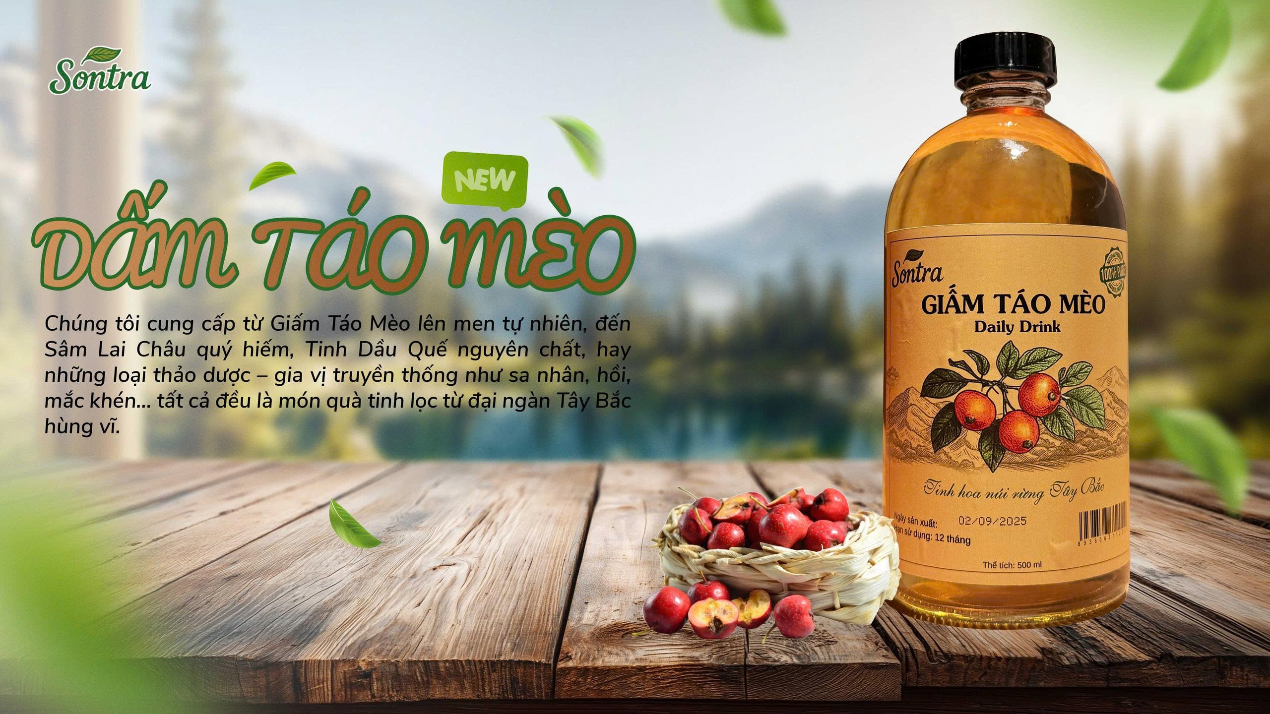 Sản phẩm giấm táo mèo lên men là kết quả của Dự án cấp Nhà nước mã số 02.SXTN/04.15.CNSHCB. Điều khác biệt của sản phẩm là quá trình lên men được bổ sung thêm các chủng nấm men và chủng vi khuẩn acetic thuần chủng làm cho quá trình lên men được nhanh hơn và tránh được việc nhiễm tạp những vi khuẩn lạ ảnh hưởng đến chất lượng giấm táo mèo sau này.